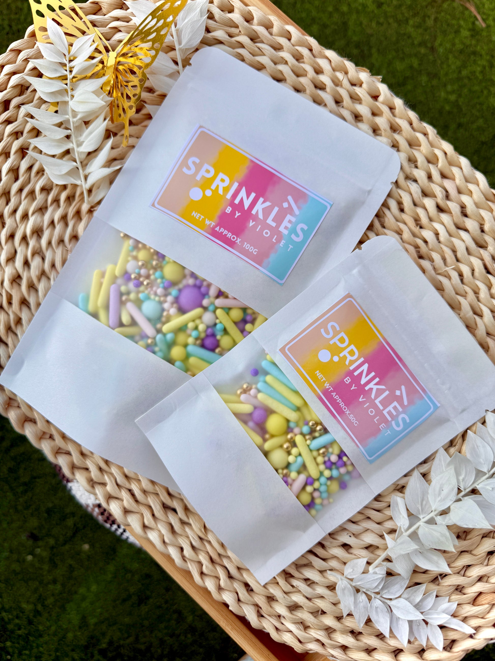 All our sprinkle mixes are available in 50g and 100g packaging! Order yours today