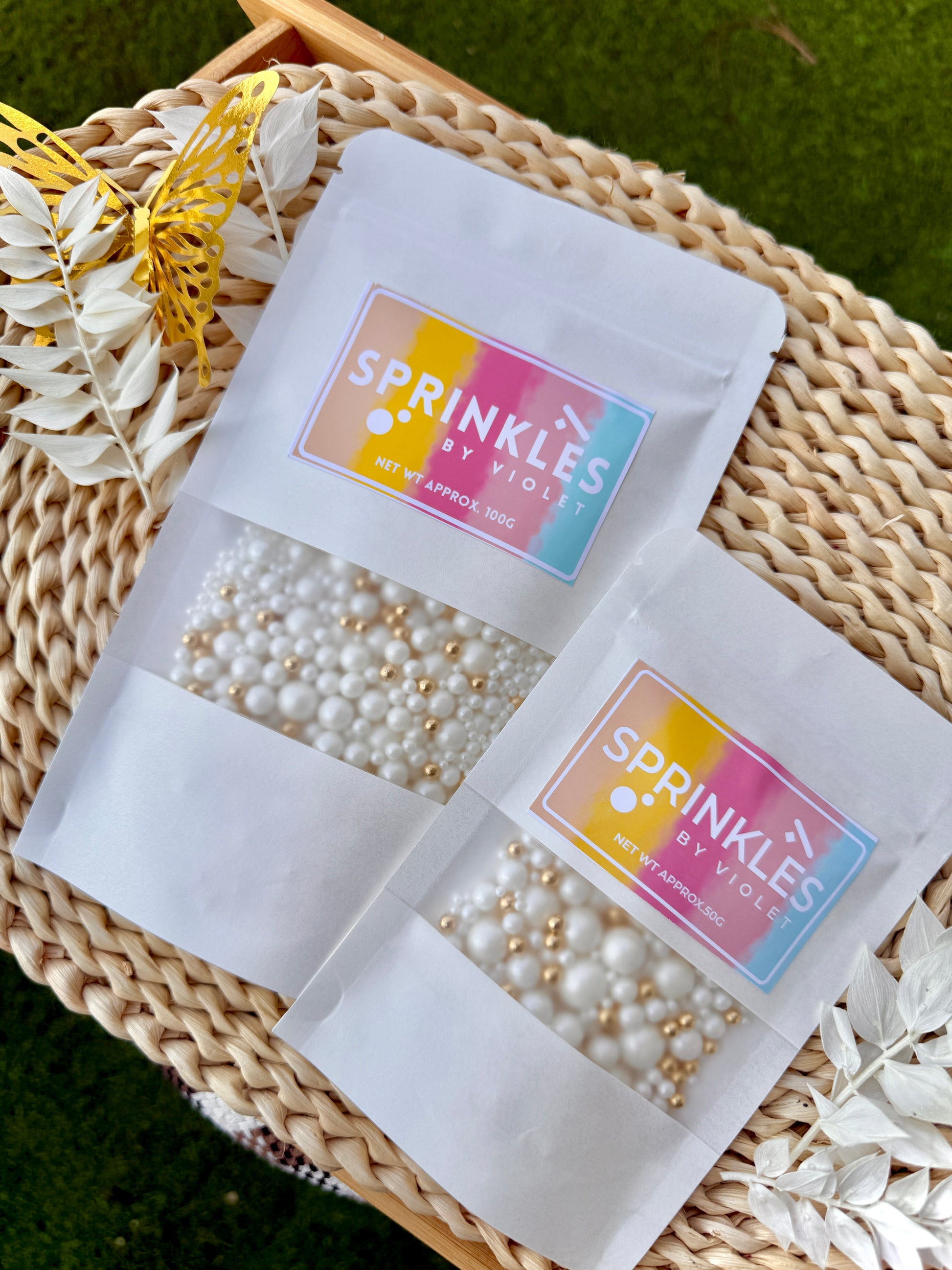 This gorgeous sprinkle mix is an absolute MUST-HAVE! The perfect blend of pearl sprinkles mixed in with luxe gold is a baker’s dreammm 💕 From elegant wedding cakes to simple minimalistic ones, this blend will help you glam up all your bakes and take your desserts to the next level!